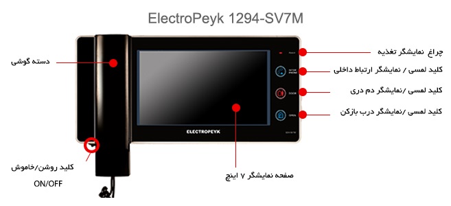 طراحی زیبا با نمایشگر 7 اینچ در 2 رنگ سفید و مشکی دارای رابط کاربری برای تنظیمات محصول (OSD) ارتباط داخلی یک به یک دارای حافظه داخلی قابلیت افزودن حافظه جانبی: تا 16 گیگا بایت با کارت (SD) دارای 15 ملودی زنگ متنوع امکان انتخاب زبان: فارسی و انگلیسی قابلیت ضبط صدا دارای نشان دهنده زنگ بدون پاسخ (چراغ چشمک زن) قابلیت اتصال به 2 پنل درب ورودی و 2 دوربین امنیتی دارای صفحه کلید لمسی قابلیت عکس برداری و ضبط فیلم بهره گیری از فناوری ساخت (SMT) جنس بدنه (ABS) آنتی استاتیک،بدون تغییر در رنگ محصول